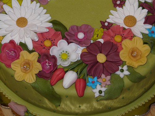 Ивейн също я коментирах във фликр, но и тук - страхотно въздействаща торта. Относно моята торта - много материал отива, отделно обличах етажите и отгоре правих диплите. Не писах тук, но това ми е втори опит за тази торта - в събота почти завършената ми торта буквално се срути и не можах да я спася по никакъв начин. Причината за срутването беше, че не облякох първите два етажа. Но аз нали съм си упорита - пак я направих. Само дето последния етаж на първата ми торта беше по-хубав, защото за лентите ползвах съхнеща маса, а втория път ме домързя да оцветявам съхнеща в този цвят. Което се оказа голяма грешка, защото лентите от несъхнещата маса се точиха и деформираха и поразвалиха малко търсения ефект.