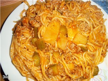 От мен една бърза питка/че нямах търпение да опитам новата тавичка/ и едни спагени-екзотик/с ананас/