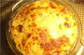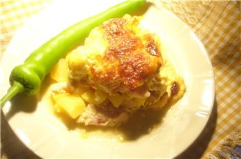 запеканка с картофи, пилешко месо, топени сирена