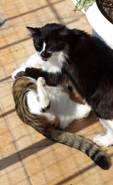 благодаря за съветите, в най-скоро време наистина ще ги оставим да се разберат кой е шефът, и аз си мислех за пулверизатора с вода, ако стане напечено. И за този феромонен спрей се чудя, но е доста скъп и ако няма ефект... Дано се разберат.