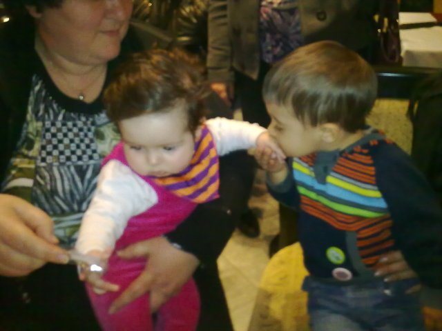 Иначе вчера купона мина страхотно - стояхме до 2 часа, Дарчето и тя редом до нас, до 12 откара. Ама голям кеф ви казвам- за 2 мин не съм я видяла-толкова мераклии да я гушкат... пък аз хич нямам проблем да я давам на хората  Embarassed Всички и се радваха какво купонджийче била... А когато в 12 без малко поднесоха тортата и дядото духна свещите и гушна внучето да танцуват... ами аз ревнах от умиление... дано още много години така даа ми празнува милото тати...