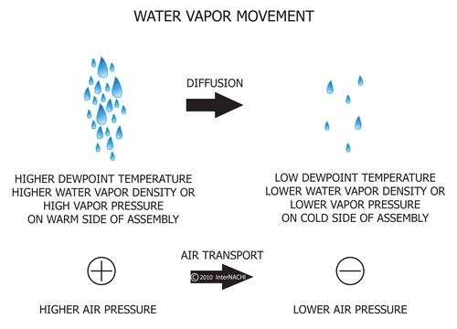 Иначе казано ако има условия точката на оросяване да е в дебелината на стената (най-често през зимата) и мембраните не са добре монтирани и има зони на инфилтрация от стоителни дефекти, количеството влага, което може да бъде транспортирано чрез движение на въздуха (въздушни течове) е доста голямо, за да овлажни сериозно изолацията в стената.