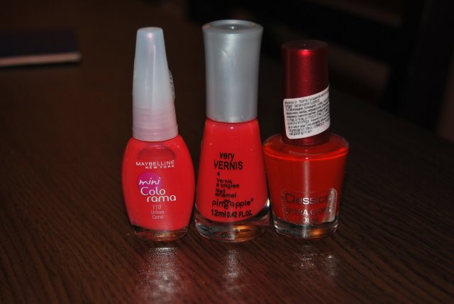 Revlon - mad about mango (ароматизиран), Flormar N008 (неонов), Essence - time for romance 72.