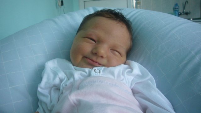 Ах, душица мамина  Heart Eyes Heart Eyes Heart Eyes прелестна е Heart Eyes Въобще не прилича на новородено, много оформена и тази дяволита усмивка на последната снимка.  Hug Hug Hug
