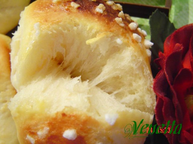 Хляба обаче аз го направих по рецептата за oбикновен бял хляб, но вместо вода, прибавих прясно мляко. След второто втасване на  bouquetмазах отгоре с прясно мляко и затова получи такъв подстрекаващ златист цвят.