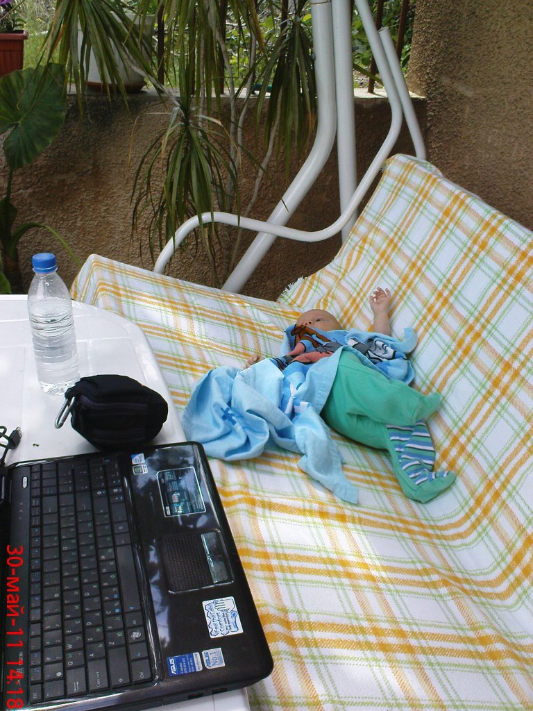 Интересното обаче е, че Преслав си спеше спокойно, въпреки боботенето на коли и автобуси на метър от количката