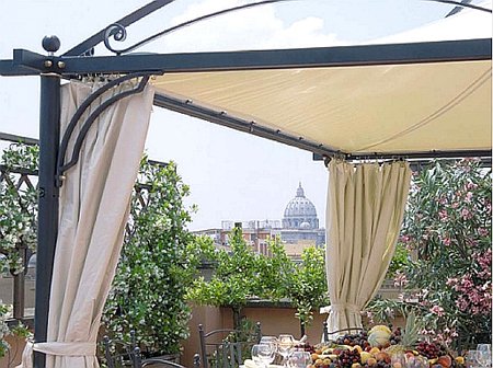 Напредвате ли с вашите местенцца за релакс? Аз нещо не смогвам през седмицата да отделя време и на терасата, но в следващите почивни дни ще приключа с подредбата на мебелите. Върти ми се из главата да сложа нещо подобно, без покрива, само от една-две страни да ги опъна на корниз от ковано желязо. Не мога да преценя дали няма да е прекалено за тераса? Ще мисля още по въпроса.