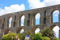 Аквадукт Камарес -изящното бижу на КавалаОткъдето и да влизаш в Кавала /по пътя през планината или по този покрай морето/ наближавайки пристанището, пред теб се възправя една внушителна строителна конструкция: аквадукт Камарес, създадена в Средновековието и функционираща до наши дни. Особено ефектен е аквадукта откъм морето. Имах възможност да го видя и оттам, много е впечатляващ. Особено привечер, когато от слънцето остава само тъмнорозов ореол и се включват изкуствените светлини, Кавала заблестява като броеница на фона на планината, а Аквадукта с елегантните си арки изглежда като излязъл от приказка от 1001 нощ.
