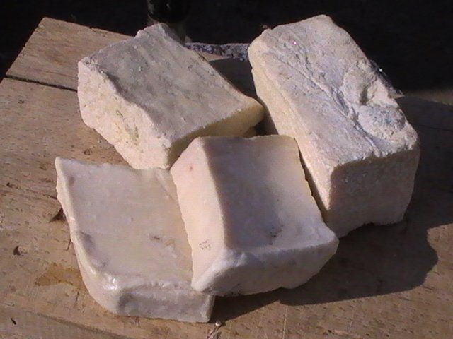 Разтапям мастта и изсипвам всичко както е записано,разбъркваш добре,намокряш съда голяма тава или старо корито,ако нямаш 1голям съд ,то тогава няколко по малки.Оставяш на хладно да се стегне,после си го нарязваш на калъпи.Ето така трябва да изглежда