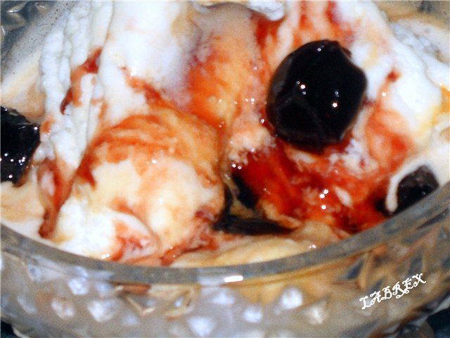 Ох, успях да прегледам само последната страница и свят ми се зави Crazy...то пилето на Марабу ли да гледам, пържолките на Мариета ли, сладкишът на Вени, Дес сложила една примамваща пица, Верабел вкусотийки и по традиция - след разкошната мелба на Лабрекс да покажа и аз...сладолед  Laughing -