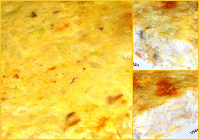 Вкъщи оризова запеканка с тиквички, гъби и телешко.