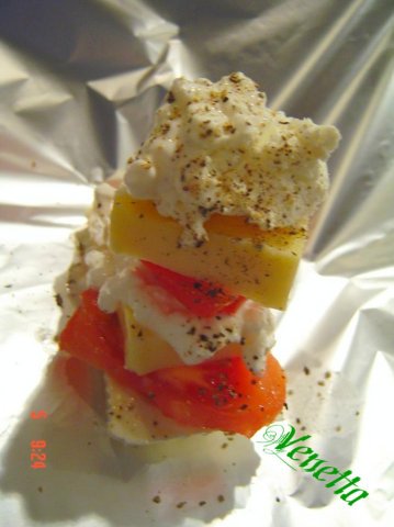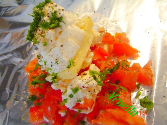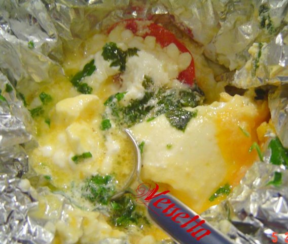 От мен сиренá във фолио, но с домати, черен пипер, магданоз и яйце.
