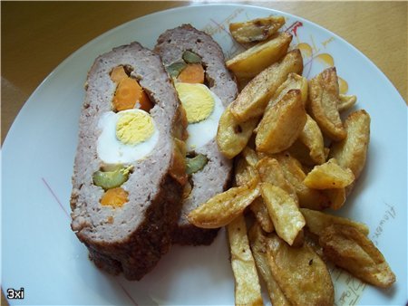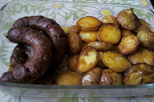 - "надупени" картофи и печена наденица