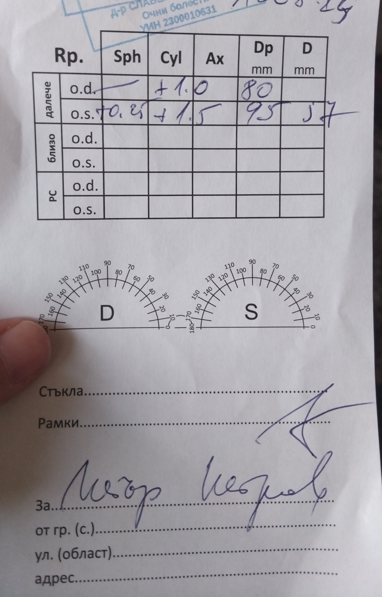 а ако трябва да се направи частична корекция и на диоптъра за късогледство (напр. ако очилата ще се ползват предимно на средно разстояние):