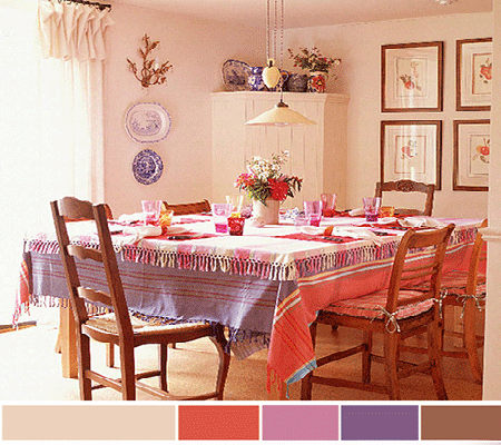 При избора на цветове за обзавеждането на бъдещото жилище е важно да се вземе предвид цветовата гама на вече наличните елементи като дограма, входна врата и подови настилки. За бяла кухня и дограма в цвят дъб, препоръчително е да изберете светъл нюанс на мляко с кафе за стените, което ще придаде свежест и простор. За дивана бял с големи цветни цветя е добър избор, като подът може да бъде във възможно най-близък цвят до този на дограмата. За коридора теракот в сивозелен цвят може да бъде подходящ, като се стремите към просто и класическо обзавеждане.