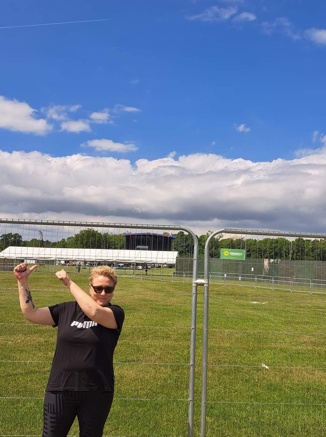 Столчето ми изглежда доста компактно и подходящо, но аз самата до сега не съм ходила на концерт на такива места и не знам дали пускат. На стадиони, на временно изградени трибуни сме били много пъти, но на концерт на поляна ще ми е за първи път на мен. Ако не беше за Депеш Мод, не бих отишла. Тук до сега винаги са пяли в зала. Иначе сцената за утре е готова. Има и нетърпеливи фенове.