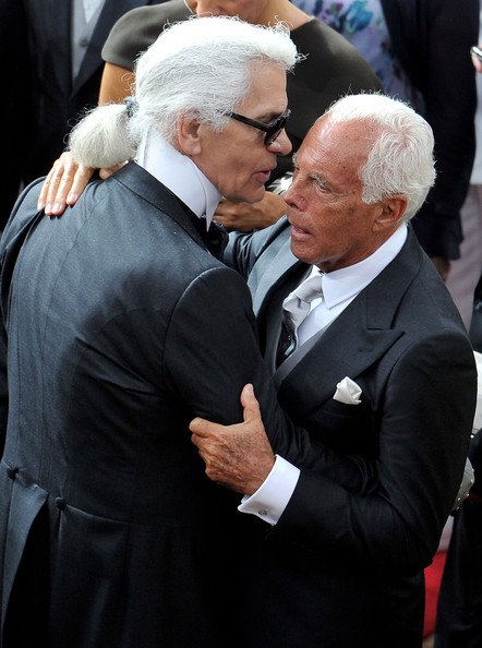Според мен на първата снимка Армани казва на Лагерфелд нещо в стил "видя ли бе, селтак!'Simple Smile)