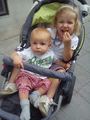 Прекрасни са ни дечицата, а майките изобретателни. Аз в моята количка така и не успях да ги събера двамата и движих известно време с двойна тип влакче, обаче по баира здраво се запотявах Laughing