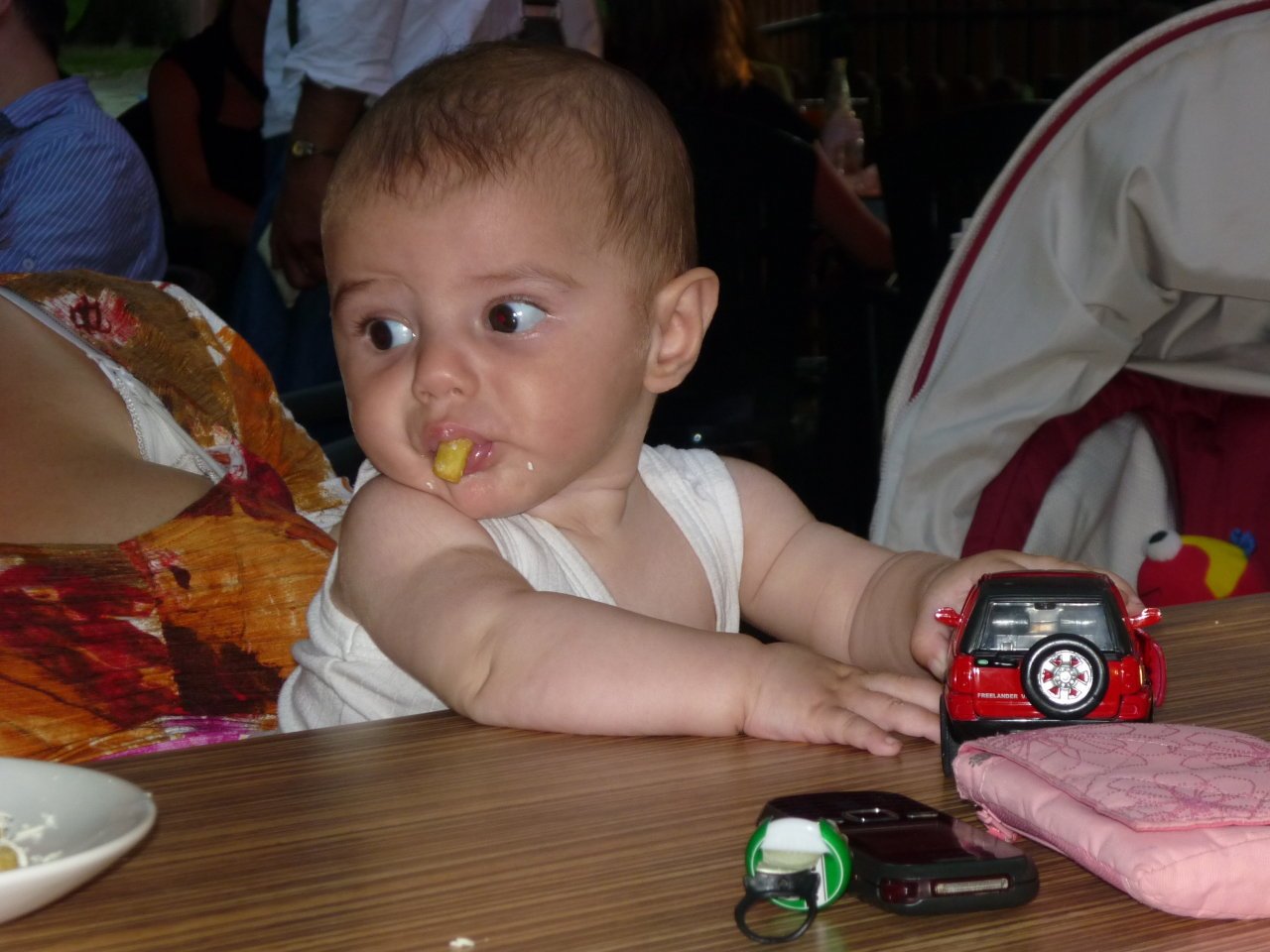 Да се похваля и аз - купих едни големи черни череши, сладки като мед и ще давам на беб преди малко... обаче се сещам колко наблегнахте на "голяма мазаница" и решвам да не се правя на по-умна от всички, съблякох беб по памперси и му връчих бибата с черешите! Заслука той щастливо и в момента в който реших да се дръпна ме хвана за белия ленен панталон с червена ръка  Crazy Crazy Crazy дайте акъл сега как се вадят петна от череши!