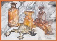 Елинор,не обичам да правя критики,но ще ти кажа какво ми направи впечатление.Първо ми се наби в очите драперията-в една бяла драперия могат да се вкарат много леки цветни нюанси,за да живне.Бялото стъкло е добре да включва синьо-сиви,може и зеленикави мюанси,не само сиво,зависи от стъклото.Това е мое мнение,но не го приемай,за непременно правилно,и аз правя много грешки и се уча  Simple Smile.Кафявите шишета са се получили много добре,както и сянката,която хвърлят-много естествено седят.Между другото,благодаря ти,че сподели за акварелния учебник.Взех си го-наистина са основни неща,но е хубаво човек да си ги препрочита,че се забравят.Редактирах си поста,защото сега я разгледах вкъщи по-детайлно на по-голямо изображение.