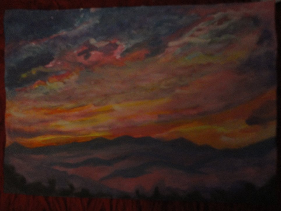 Чарли, има колорит и емоция в картината ти. Ако е залез трябваше да са мааалко по-бистри цветовете. Браво!