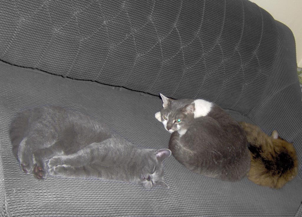 А ето ги и тримата спящи (снимката е по-стара, перспективата е такава, че дребният изглежда почти колкото Ушан  Laughing):