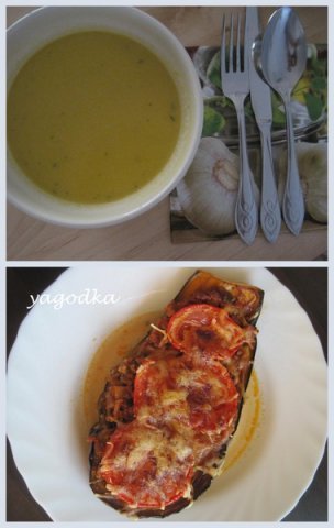 От мен крем супа от тиква, домати, картофи, лук и пресен лук. Много вкусна се получи, та чак ме учуди.  Laughing И пълнен патладжан с кайма.