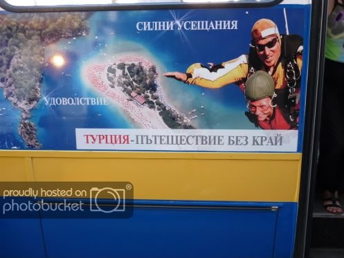 Реклама на Турция, разлепена по тролеите. Чудя се през колко ли хора е минала рекламата преди да бъде дадена за печат и как ли никой не е забелязал, че е написано пътеществие?
