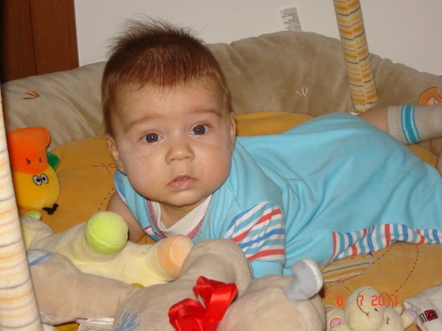 Ходихме на консултация 8300 гр (+500 гр.) и 68 см (+1 см) но според мен не го измери правилно, мисля че е по-дълъг Wink Отожихме ваксината, че нали нещо му е запушено нослето. Дадоха ни направление за кръв и урина, но ще изчакаме една-две седмици, за да не покаже нещо от настинката.