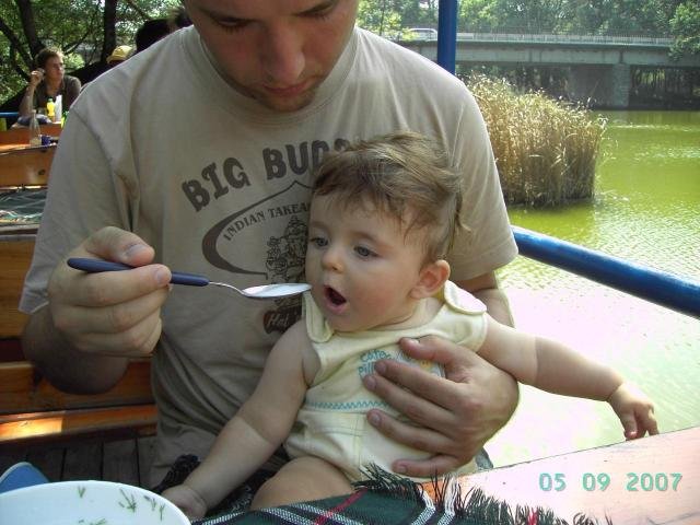 Аз наааай-после вчера захраних. Реших да започна с оризова каша да видя как ще реагира, а другата седмица ще почна със заленчуците. На Стефан идеята за хранене с лъжичка определено му харесва. Похапна си с кеф (а тя е тоооооооолкова гадна на вкус според мен). И сега е време да препрочитам старите теми и скоро време очаквайте да започна с дебилните въпроси, от сорта на "До какво количество каша трябва да стигна?"