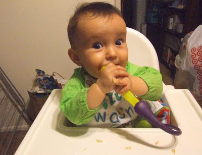 Първия месец постоянно и се гадеше И повръщаше. Ако беше само гаденето - както и да е, но тя повръщаше при всеки опит... Освен това не знаеше как да премести храната в задната част на устата и съответно не можеше да преглътне нищо. Тъй като това нещо продължи много дълго, бях почти пред отказване от метода - спаси ме това, че и пюрета и каши не искаше и не можеше да преглътне. Явно е от тези дечица, които стават готови за захранване малко по-късно. Малко след седмия месец се научи на това упражнение с езика (да премята храната из устата си докато я избута назад) и съответно да преглъща някакви количества. Много обича авокадо и броколи, обича и диня. Единствено от авокадото приема по-големи количества, но от повечето други неща хапва 2-3 пъти и губи интерес. Аз съм търпелива и я изчаквм - знам, че ще прояде, когато е готова. Иначе е на кърма и знам, че от нея получава от каквото има нужда. А, от известно време яде и оризовка - много ме радва как си отхапва, смуче, дъвче и преглъща  Heart Eyes (тя има 7 зъбчета вече)