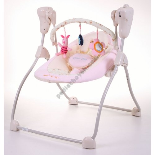 Ето с това я занимаваме и й е доста интересно,особено,когато играчките се клатят пред нея.Посяга към тях и ги оглежда с любопитство.Механизмът на въртене обаче я приспива от раз  Laughing Като се загледа в него 3-4 мин и е аут  Sunglasses Готиното е,че не се налага да люлееш ти,а има 5 степени на автоматично люлеене  Peace