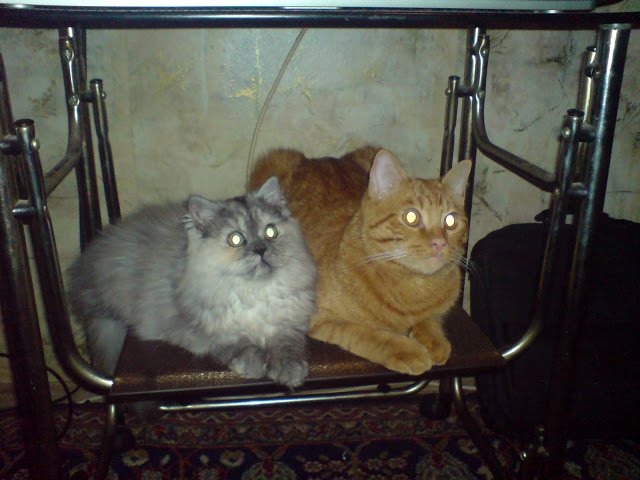 По въпроса за гушливостта на котките- Маца не дава да я пипа друг човек освен мен, единия ми син и мъжа ми, но аз съм и голямата любов Laughing и като дойдат други хора просто си стои зад хладилника. Докато Сънчи постоянно се вре в краката на всички, много е  контактен, но пък дава само на децата да го мачкотят и милват колкото искат.