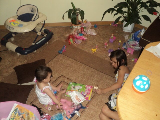 Tuti много сладки са ти бонбончетата Hug Ние още не можем да седим та засега с каката се забавляват в легнало положение,или тя търчи и прави номера пък малката се хили Laughing