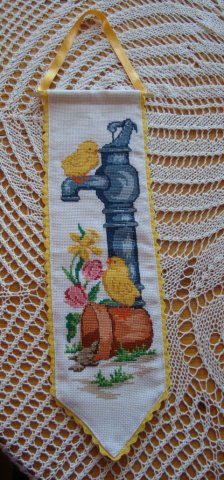 Изпрати ми го доста отдавна, но понеже трябваше да се мине на машина, а аз съм ужасно скарана с шиенето, та чаках майка да ми го довърши. Най- после му дойде реда. Нарочно не съм го огладила, защото ще го прибера до Великден, за сега няма да го закачам и не искам да пожълтее.