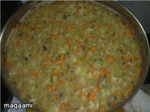 пълнени тиквички със зеленчуци и сметана на фурна и кафяв, здравословен ориз на фурна: