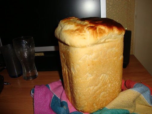Ей го, първият ми хляб, опря в капака, та допичах на горен реотан в печката. Хем изпуснах пакетчето с мая, та половината се изсипа на земята и само с половин пакетче мая месих и пак опря.