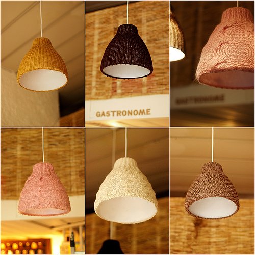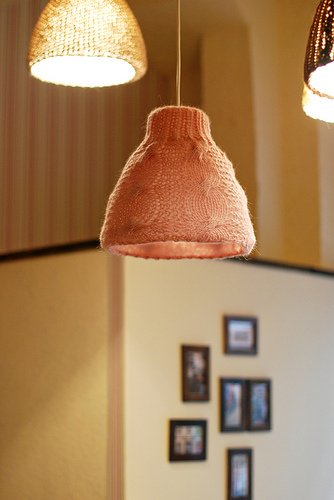 Лампите - плетени от майка ми по моя идея - различни цветове, различни плетки.