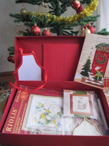 И аз, и аз  ще се похваля днес.  bowuu Благодаря много на krk_kr, тайната с морето е разгадана- нашето, Черно море си е. Grinning. Mного хубаво подаръче- магнолията е точно в десятката. Имам си и схеми за останалите 2, да си го направя комплект триото. Картичката е собственоръчно изработена от другарчето, много ме радва. Hug Благодаря и за панамата и за конеца особено. Hug Всичко е много хубаво. А бонбоните скоропостижно бяха изядени- любими са на малкия ми син.  bouquet Ето и снимков материал от мястото на събитието (признавам, че по едно време ми хрумна идеята да си го оставя под елхата и да си го отворя на Коледа, но нали знам, че чакате снимки, а и не съм толкова голям мазохист да се измъчвам дотогава hahaha ):