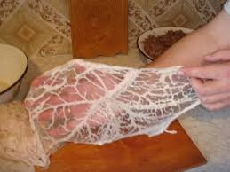 Оф като не знам как да ти го обясня, прилича на мрежа, някаква си част от прасето. Мая беше някъде до диафрагмата.