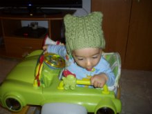 Пробвай да го лъжеш с нещо. Аз съм сложила столчето на Бобо срещу компа, а на него се върти постоянно Мики Маус на Росица Кирилова