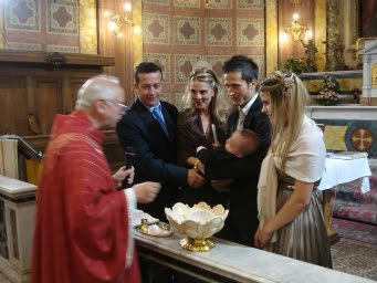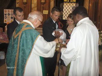 Ние кръщене вече правихме, нямаше и месец, но тук по принцип си е така традицията около 40 ден (като по библия). Крис пък беше на 3 месеца, но тогава по бавно се организираха нещата, защото тук никак не е лесно да запазиш ден в църквата и още повече там, където исках аз.Ето и 2 ми християни... Simple Smile