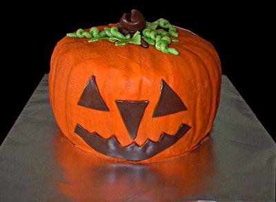Здрасти! Дъщеря ми ще имат тържество само техния клас по случай хелоуин. Аз лично не одобрявам този празник много много но както и да е. Wink Миналата година правих курабийки с оранжев и зелен марципан като тиквички. Тази година мисля да не се занимавам много и да направя една торта 26 деца са в класа. Спряла съм се на нещо подобно: