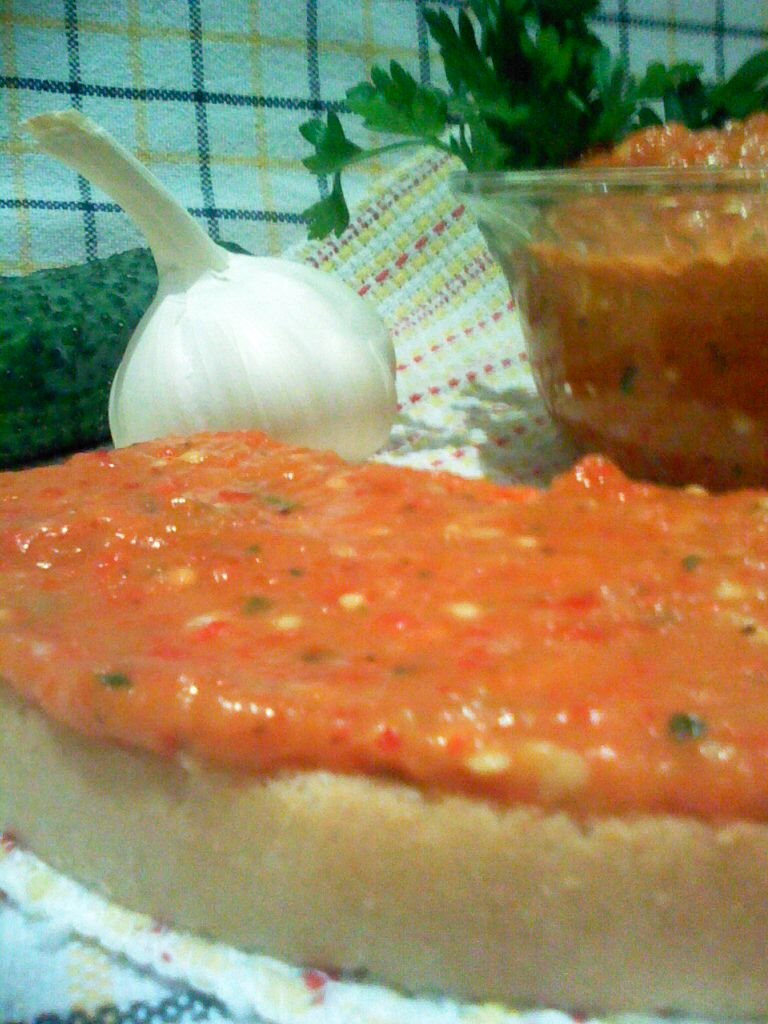 *Смилат се патладжана ,чушките,магданоза ,чесъна с пасатор или в кухненски робот.