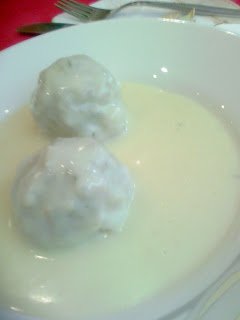 Смесва се всичко за каймата, оформят се немного големи топчета и се слагат в хладилника, докато се приготви соса.