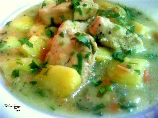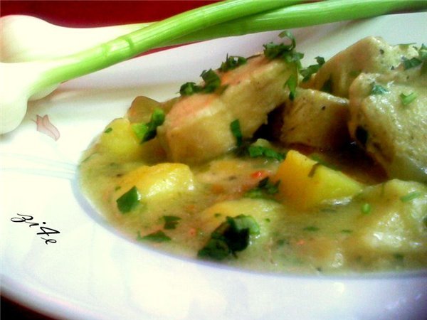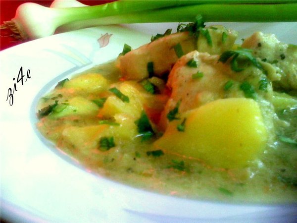 Понеже нямах праз лук този път  я направих с една връзка пресен кромид и с  пилешко филе ... получи се същата вкусотия.