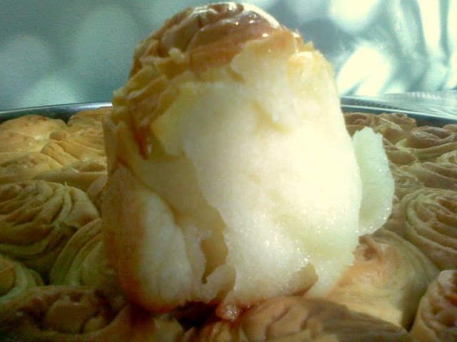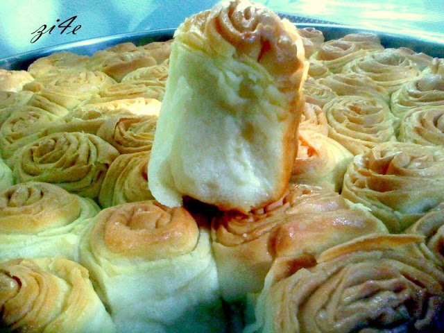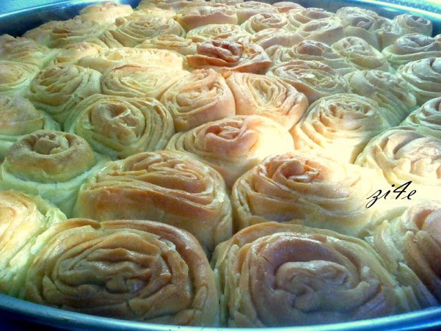 Разточват се не много тънки кори които се мажат с кр. масло и се слепват 2 по 2 .
