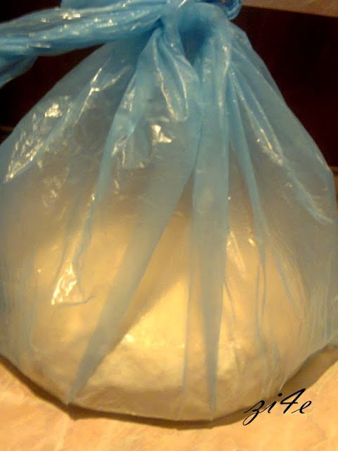 Намазвам един голям полиетиленов плик с олио и в него слагам тестото.