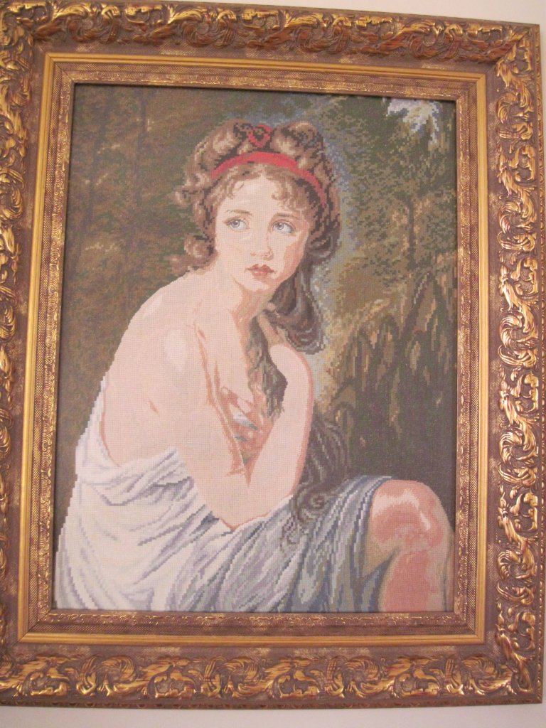 Да започнах го скоро,но нали съм със счупен крак и нямам друго занимание та си боцкам по цял ден .Мъжа ми щом види ,че привършвам  полудява,защото започвам да планирам друго и трябва да ходи за конци.За тези близо три месеца уших вече пет гоблена,два вече са в рамка и закачени.Другите са за рамкиране следващата седмица.