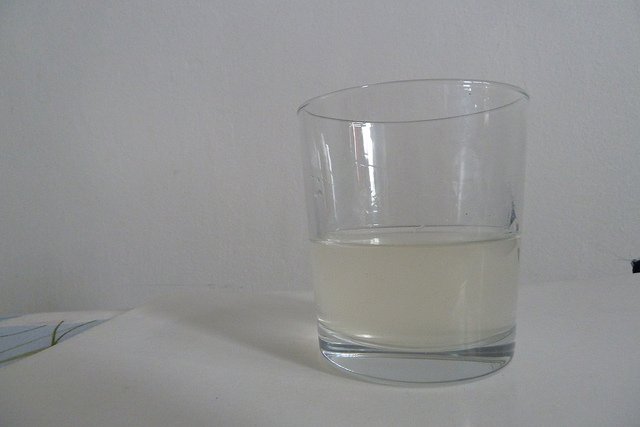 Водата: Тя съдържа много финни частици котлен камък - като гранулирани са и бледо жълтеникава.